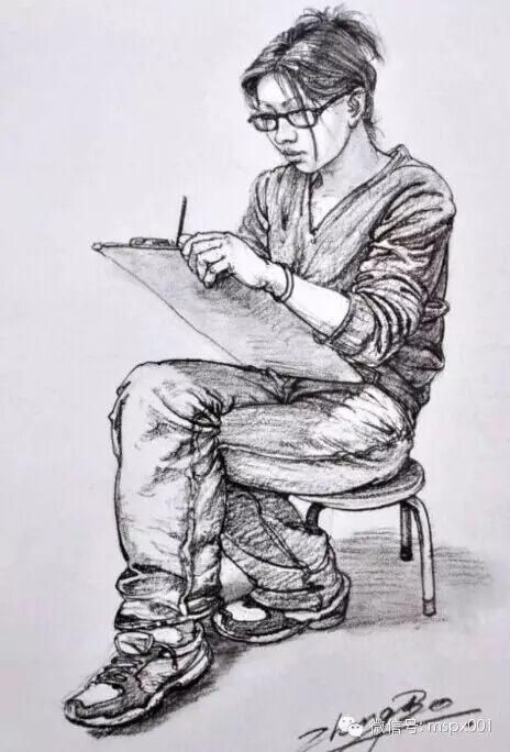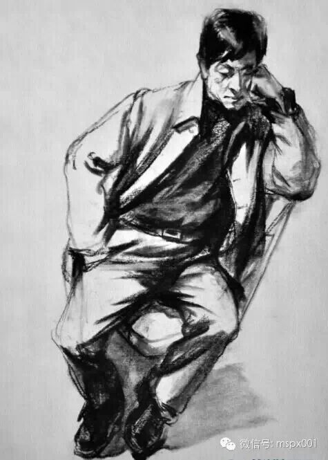 讲到现在估计大家还不知道怎么画出速写的黑白灰,而且这是一个严肃的问题很多画室的老师都不明白,速写的黑白灰是什么?所说的速写的黑白灰!头发是很细致的而且颜色很重这可以定义为黑! 然后上衣呢画了很多的衣纹但是却没有头发重,这就形成了灰!最后是裤子简单明了就交代了一下动态,颜色疏密什么都都远不如头和上衣,这就形成了白 !有了对比,有了黑白灰之后,整张画看起来就协调了,有了节奏感。没有脸头发就是脸。