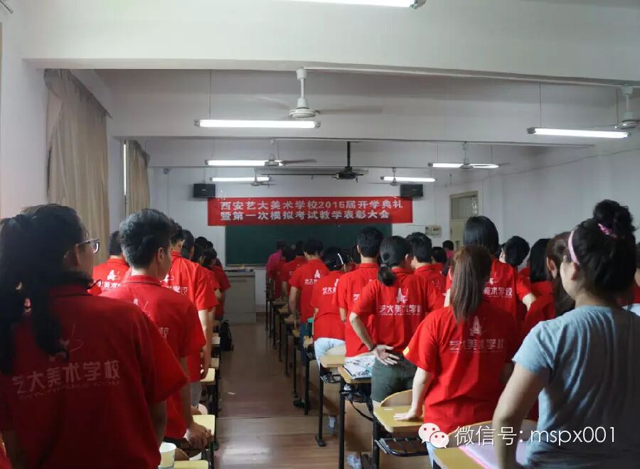 西安艺大美术文化培训学校于2014年7月27日在西安雁南一路校区举办2015届开学典礼,暨第一次模拟考试教学表彰大会