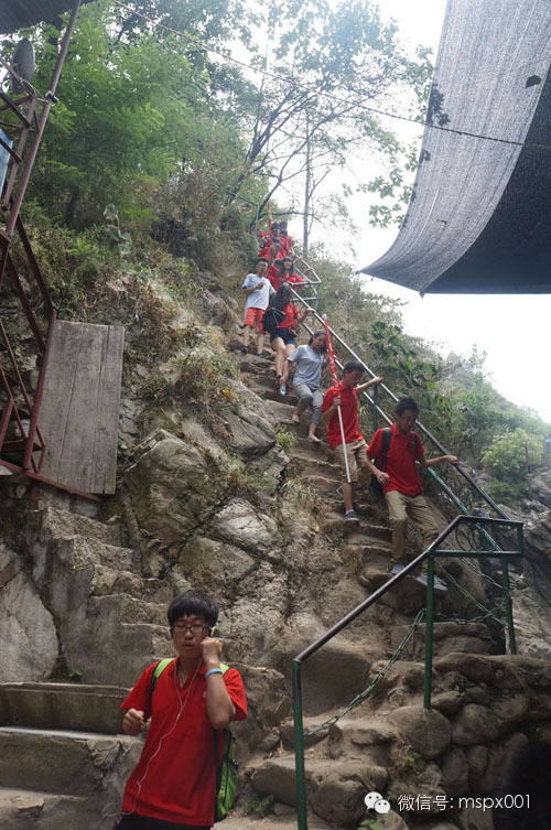 (同学们前往高冠瀑布游玩)台阶很陡,我们一直小心翼翼的向下前进,因为我们不知道下面有什么,我们怀着好奇心一点一点的往前,继续往前。好像画画的时候也有这样的好奇心,一笔一笔的画,连自己都不知道会发生什么。。。