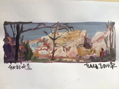 《董其昌计划》(手稿) 尚扬 10.8X38.2cm 纸面油彩,木炭条 2009