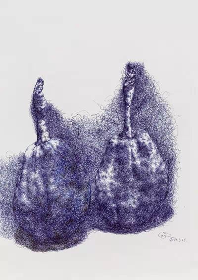 《梨子4》 蔡锦 43X32CM 纸本圆珠笔 2014